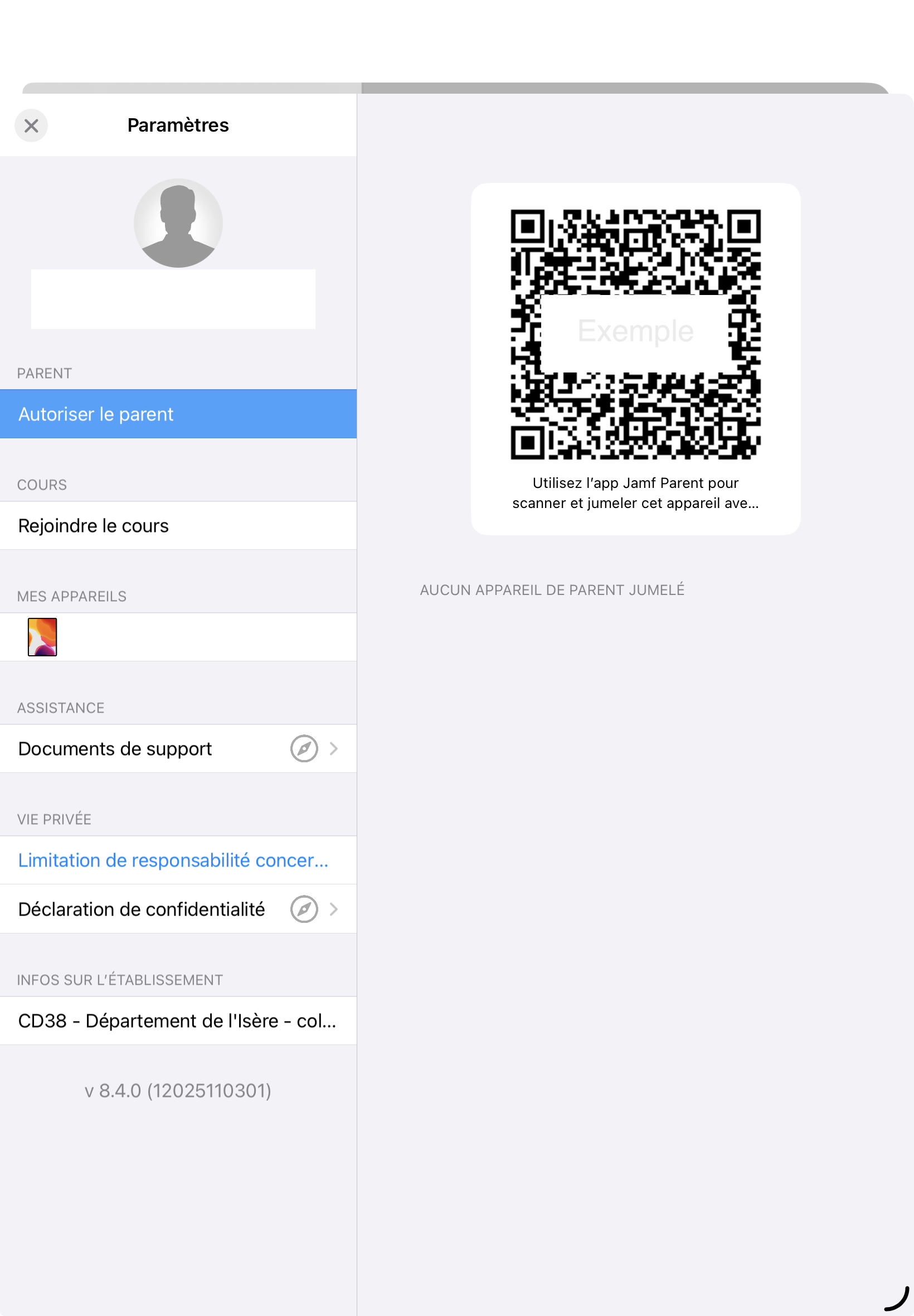 Vous pouvez dès à présent gérer les autorisations et/ou restrictions liées à l'appareil de votre enfant. N'hésitez pas à contacter le collège en cas de difficultés.