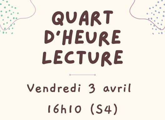 📚 QUART D'HEURE LECTURE ! Vendredi 3 avril (S4) 📚